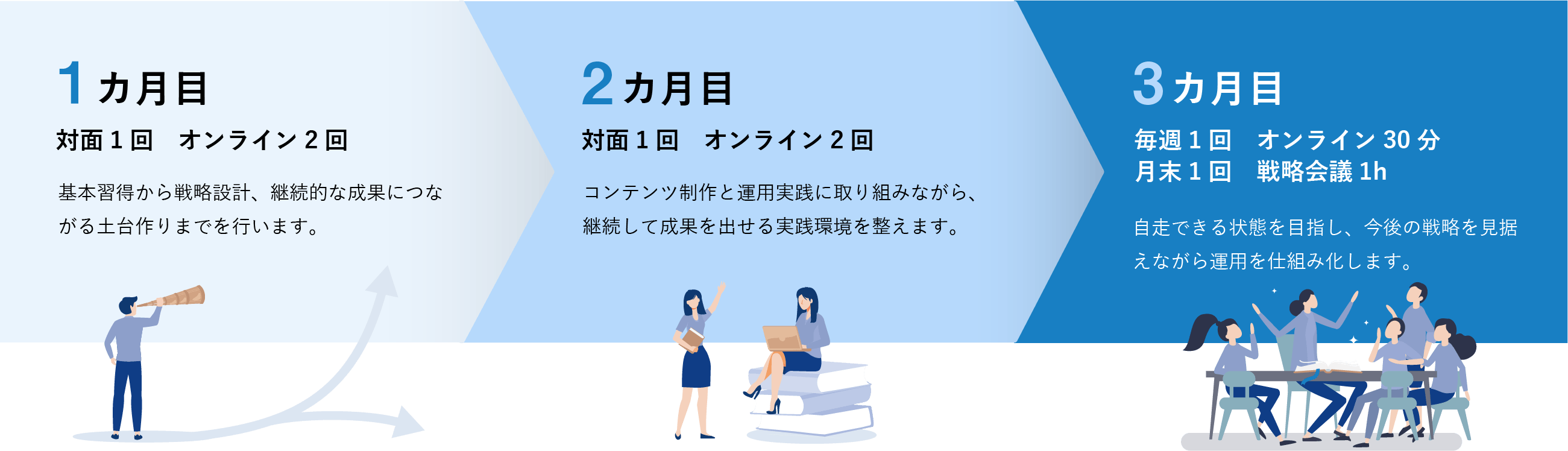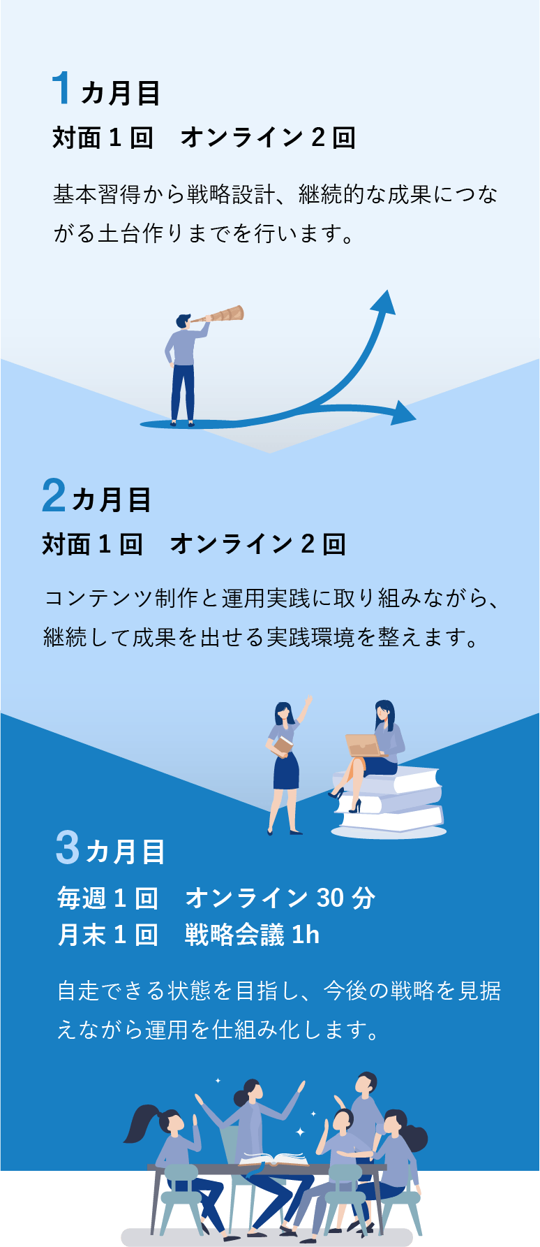 短期間でノウハウを身につけ、社内で継続的に成果を出せる仕組みを構築できるのが特徴です。
